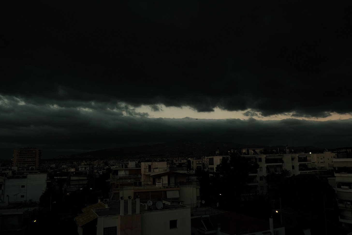 Το αυτοματοποιημένο μήνυμα παίζει σε τηλεοράσεις και ραδιόφωνα κάθε δύο με τρεις ώρες, εδώ και μία βδομάδα. Ο Νίκος τις αφήνει ολημερίς ανοιχτές, μπας και ακούσει τίποτα καινούργιο, όμως οι γνώσεις γύρω από την πηχτή συννεφιά που σκεπάζει την Αθήνα, παραμένουν οι ίδιες από την ημέρα της εμφάνισής της.